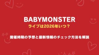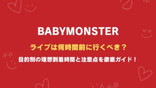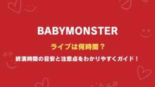 BABYMONSTER(ベビモン)のライブに行く前に、多くのファンが気になるのが「ライブは何時間?」「終演は何時くらいになるの?」という当日の流れです。特に未成年や遠征勢にとって、終演後の行動計画を立てるうえで“ライブの所要時間”は最重要ポ...